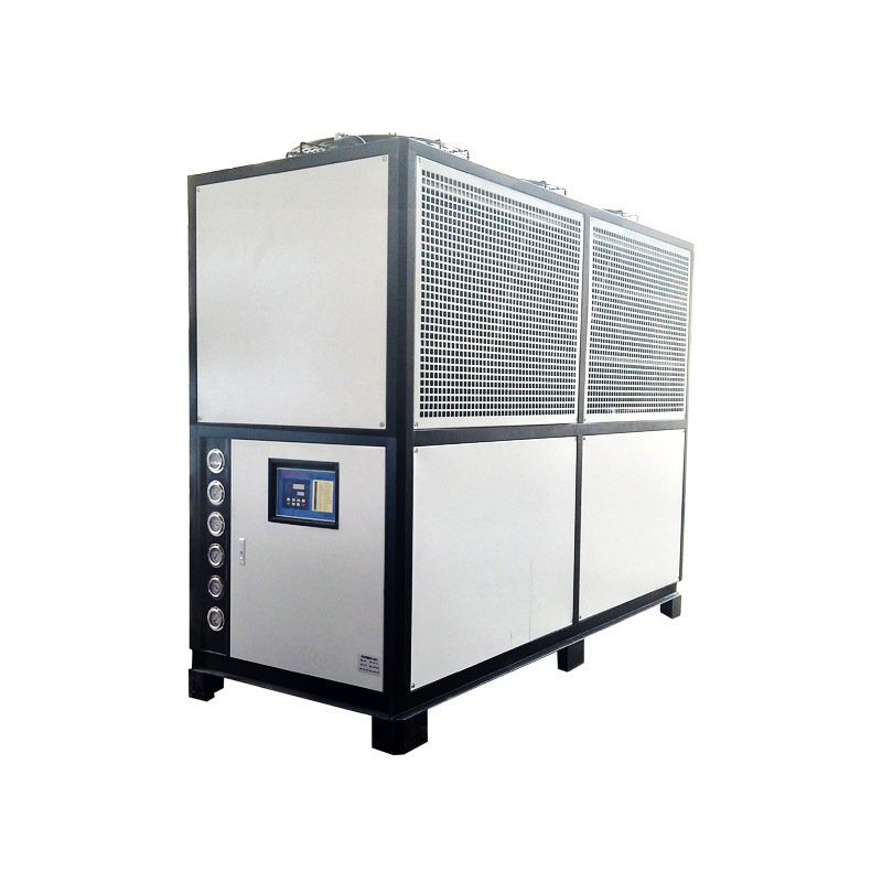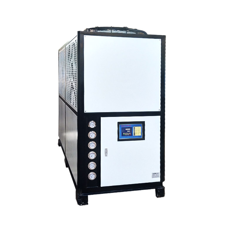 Detta är en 3PH-200V-50HZ 30HP luftkyld kylare. Stor kylare av boxtyp med en kylkapacitet på 90KW (77400Kcal/h). Används i stor utsträckning inom alla branscher: kylning av stor formsprutningsmaskin, kylning av optisk beläggning, glykolkylning, kylning av elektroplätering av oxidationstank, etc...