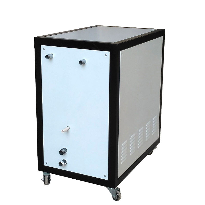 Detta är en liten vattenkyld kylare med 3HP effekt och en kylkapacitet på 9KW / 7740Kcal/h / 30722BTU.