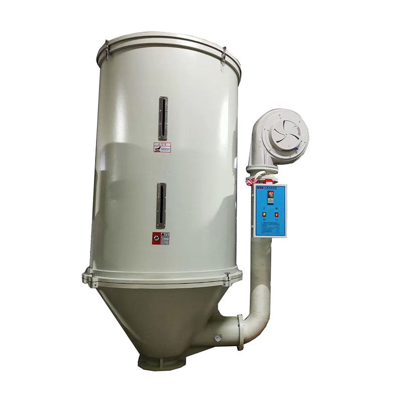 400KG plasttorken blåser konstant högtemperaturvind in i torkcylindern genom torkfläkten. Efter att råvarorna bakats tas den ursprungliga fukten i råvarorna i fatet bort för att uppnå syftet att ta bort råvarans fukt.