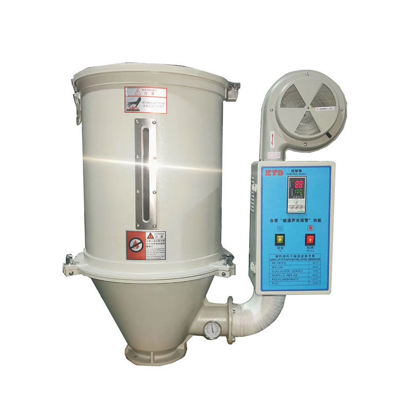 50KG plasttorken blåser konstant högtemperaturvind in i torkcylindern genom torkfläkten. Efter att råvarorna bakats tas den ursprungliga fukten i råvarorna i fatet bort för att uppnå syftet att ta bort råvarans fukt.